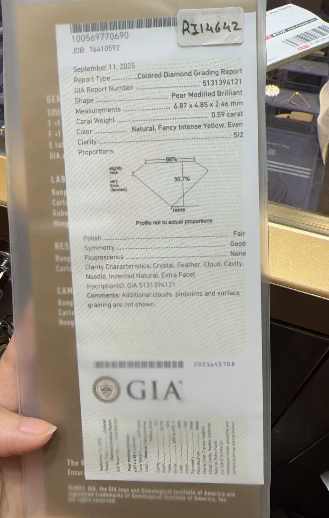 Main Diamond: 0.59ct Fancy Intense Yellow